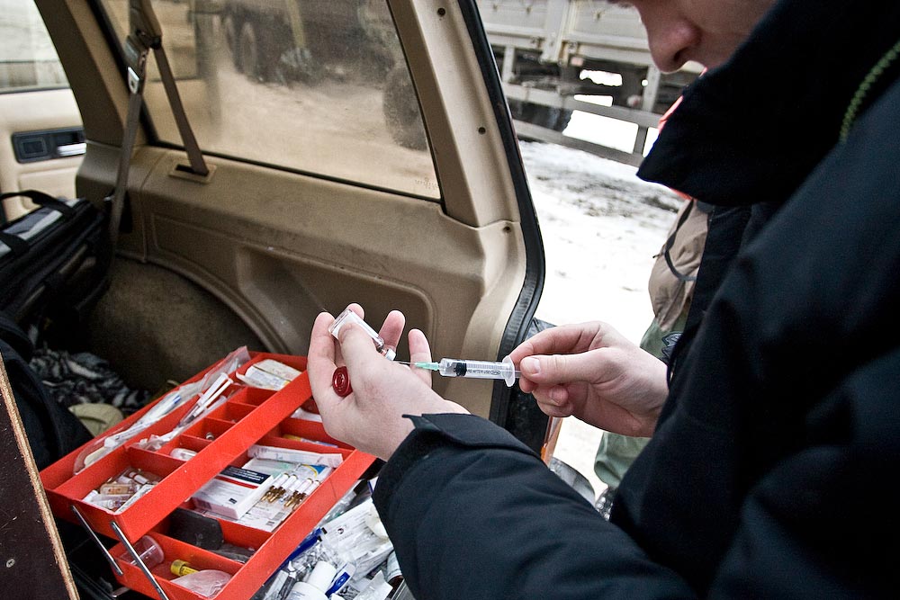 Ветеринар готовит шприц со снотворным.