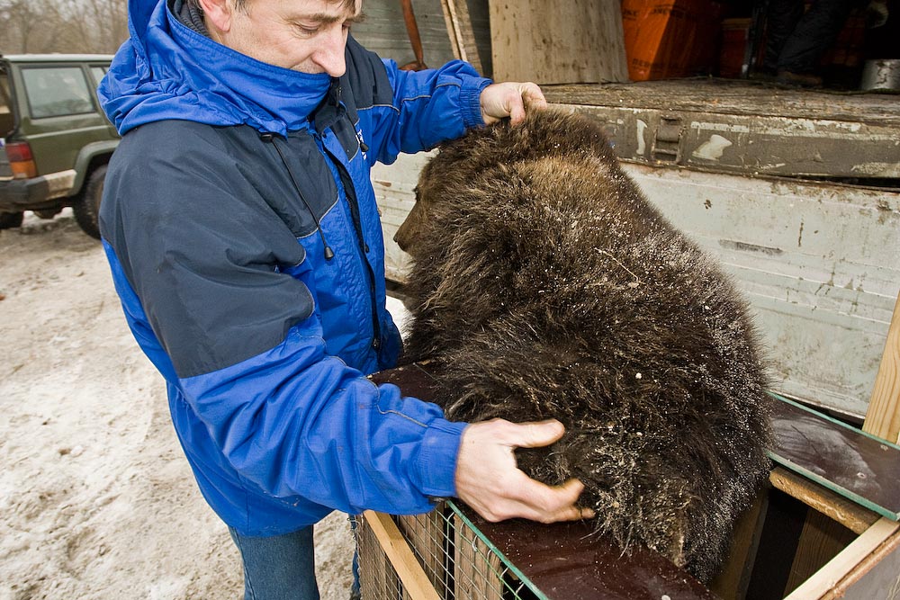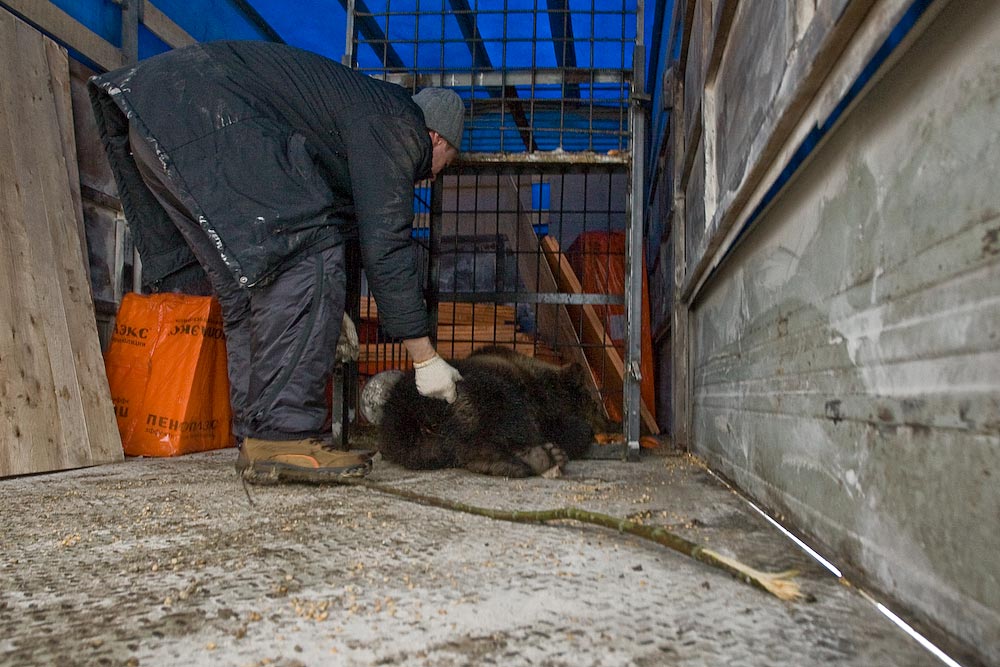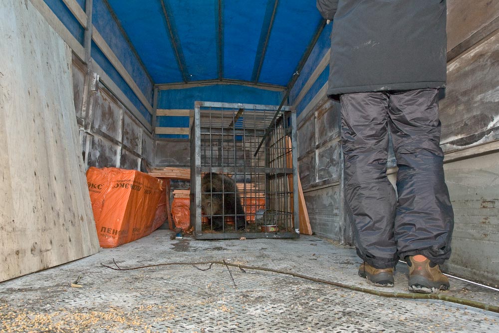 Теперь Сергей смог взять косолапого и поместить его в новый, довольно тесный для него, дом. Благо, ехать им до места всего несколько часов и большую часть пути мишка продрыхнет. На всякий случай у ребят есть еще запас снотворного.
