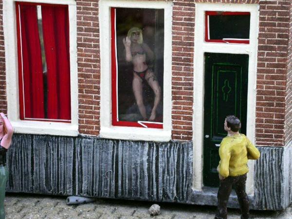 Весь товар квартала Красных фонарей можно заказать на вынос, в каждом окошке афишка с телефоном. Иногда девушка на глазах у зрителей хватает трубку сотового телефона, принимает вызов, быстренько одевается и выбегает ловить такси.