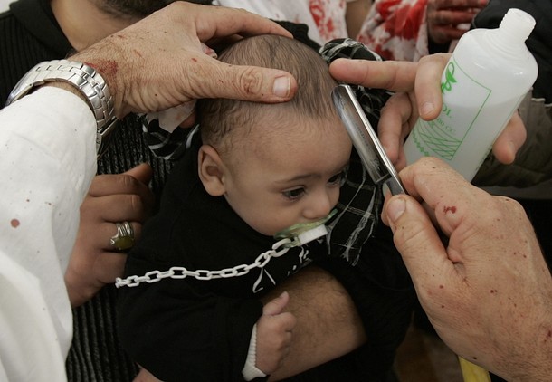 Пока православные христиане служили в церквях, купались в прорубях и стояли в очередях за святой водой в Крещенье, шииты отмечали свой праздник Ашура - день поминовения имама Хусейна, убитого в Кербеле в 680 году. Пишут, что имама убивали жестоко, с нанесением большого количества телесных повреждений, поэтому шииты так немилосердны к себе в этот день.