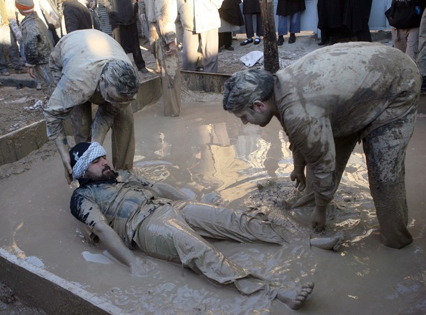 А иранские шииты - самые хитрые. Вместо того, чтобы, как делают в других странах, кромсать себе головы саблями или хлестать цепями по спинам, они одеваются похуже и устраивают грязевые ванны, называя все это Kharrah Mali.